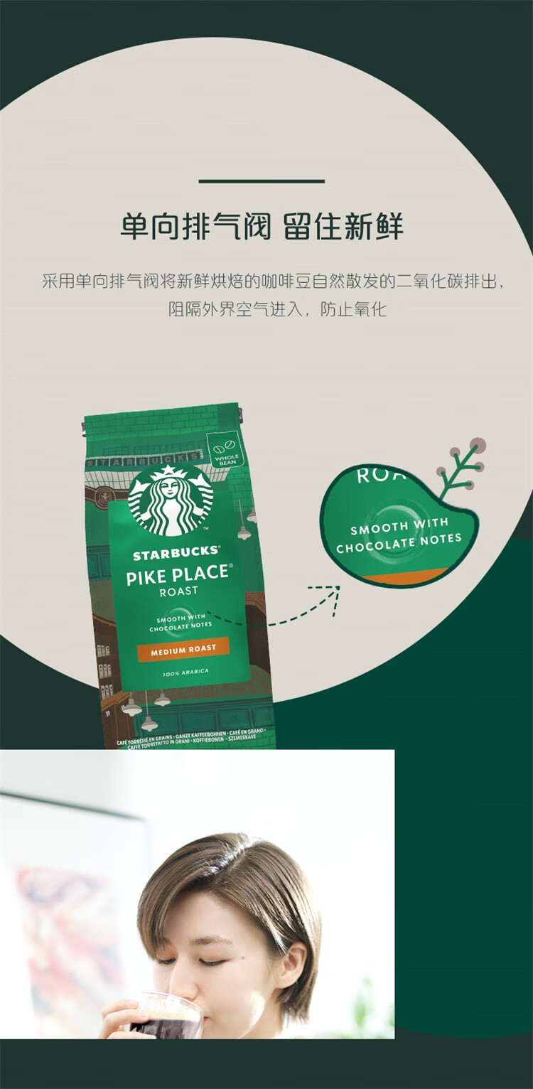 星巴克(Starbucks) 咖啡豆 Pike Place 进口咖啡豆